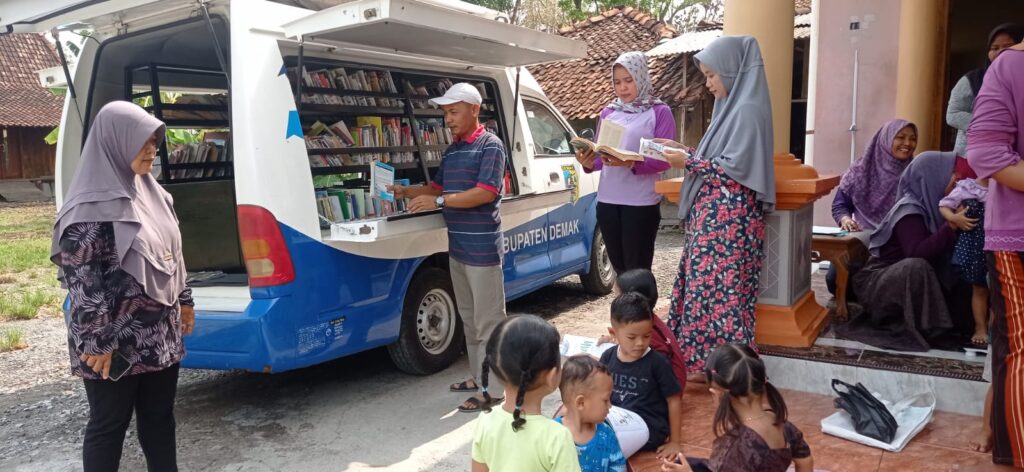 GUNTUR – Dalam upaya mewujudkan akses literasi yang inklusif, armada perpustakaan keliling dari Dinas Perpustakaan dan Kearsipan (Dinperpusar) Kabupaten Demak mengunjungi Pos Yandu di Desa Tlogorejo, Kecamatan Guntur sebagai bagian dari Program Taman Baca Integratif pada hari Sabtu, 11 November 2023.