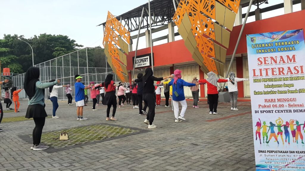 Demak – Dalam upaya meningkatkan minat baca dan kesadaran literasi di kalangan masyarakat, Dinas Perpustakaan dan Kearsipan (Dinperpusar) Kabupaten Demak menggelar acara senam bersama yang bertajuk “Senam Literasi” di Stadion Sultan Fatah Demak pada hari Minggu, 7 Juli 2024. Acara ini dihadiri oleh ratusan peserta dari berbagai kalangan, mulai dari anak anak, pelajar, hingga masyarakat umum.