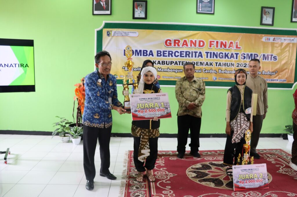 Setelah sesi penilaian yang mendebarkan, berikut adalah daftar nama pemenang Lomba Bercerita Tingkat SLTP Dinperpusar Demak Tahun 2025: