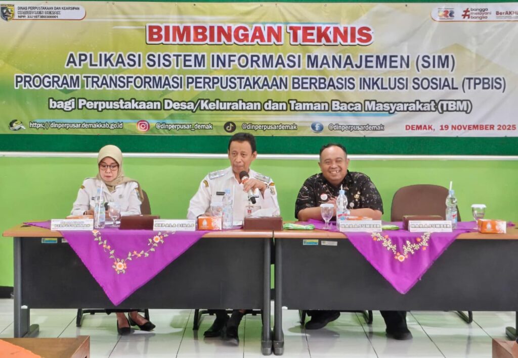 DEMAK – Dinas Perpustakaan dan Kearsipan (Dinperpusar) Kabupaten Demak secara serius menggenjot optimalisasi program Transformasi Perpustakaan Berbasis Inklusi Sosial (TPBIS). Hari Rabu (19/11), Dinperpusar menyelenggarakan Bimbingan Teknis (Bimtek) Sistem Informasi Manajemen (SIM) TPBIS yang berfokus pada pelaporan dan pengelolaan program inklusi sosial.