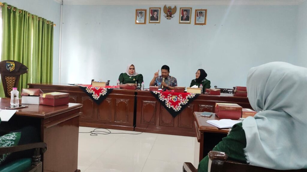 Rombongan GN-OTA Jepara yang dipimpin oleh Ibu Hj. Maftuhatin, SEditerima langsung oleh Ketua GN-OTA Kabupaten Demak, M Agus Nugroho Luhur Pambudi beserta jajaran pengurus di Ruang Pertemuan Gedung C lantai 2 Setda Kabupaten Demak].